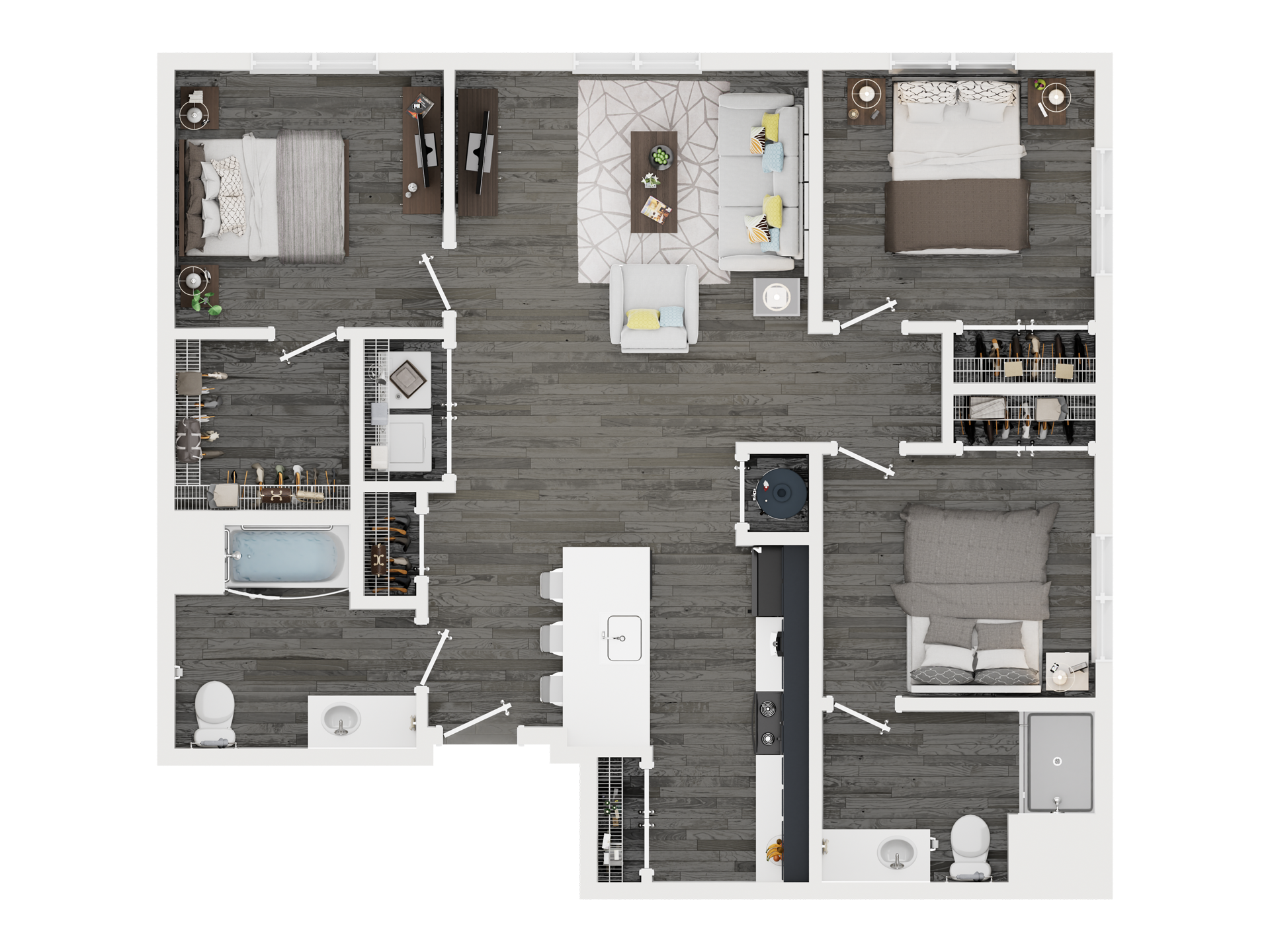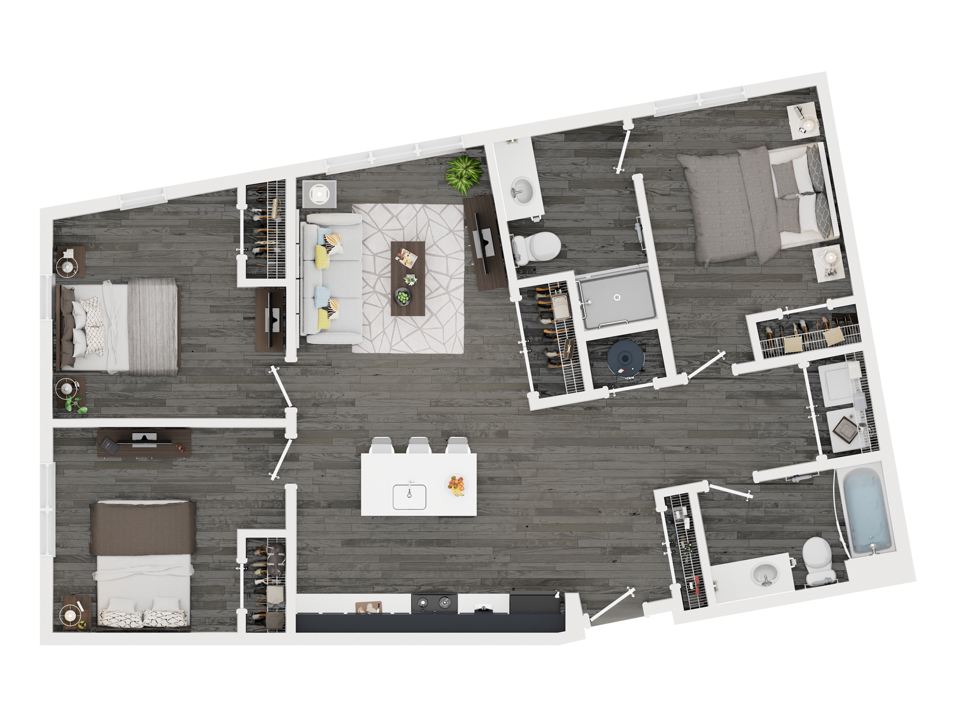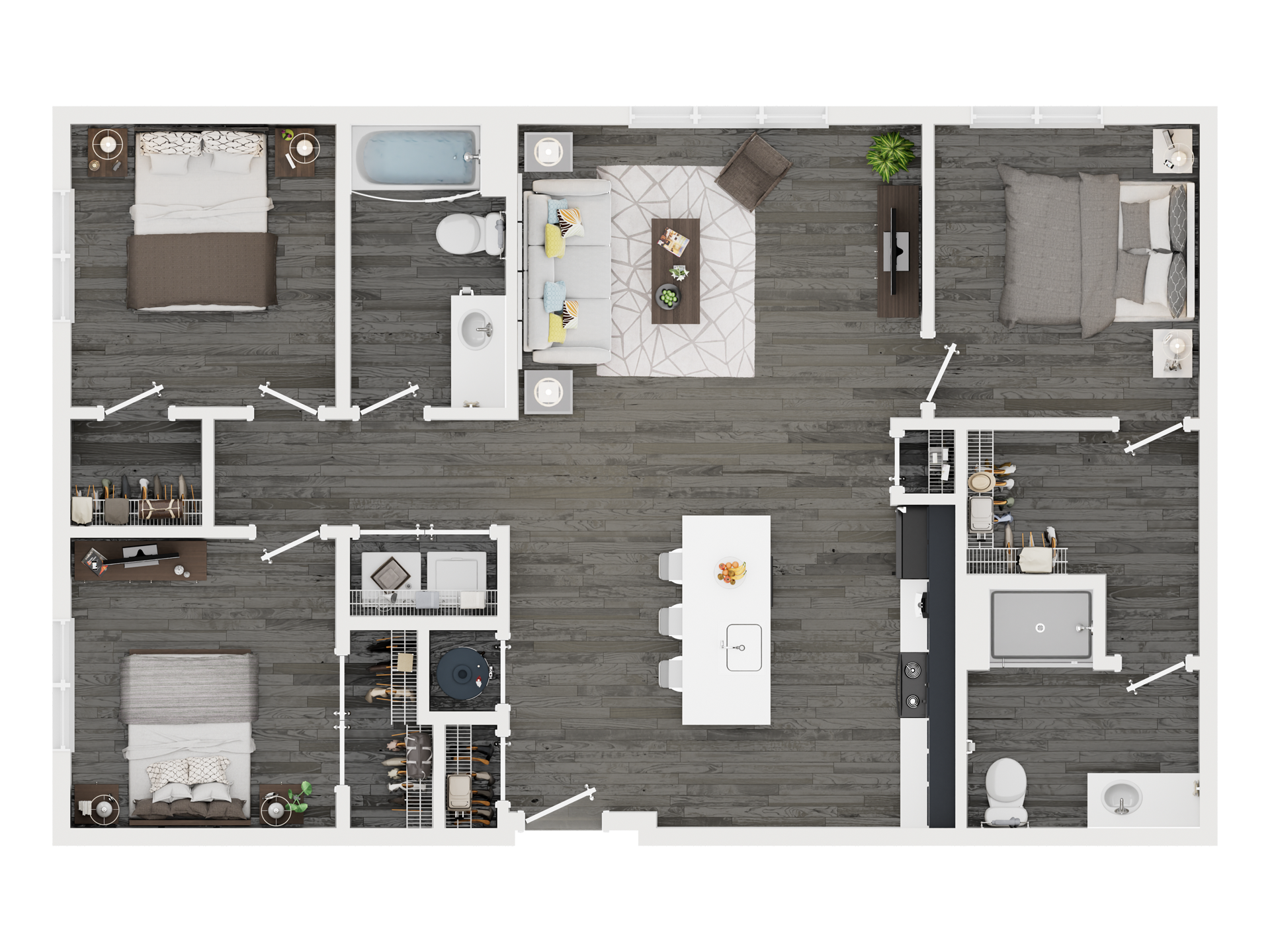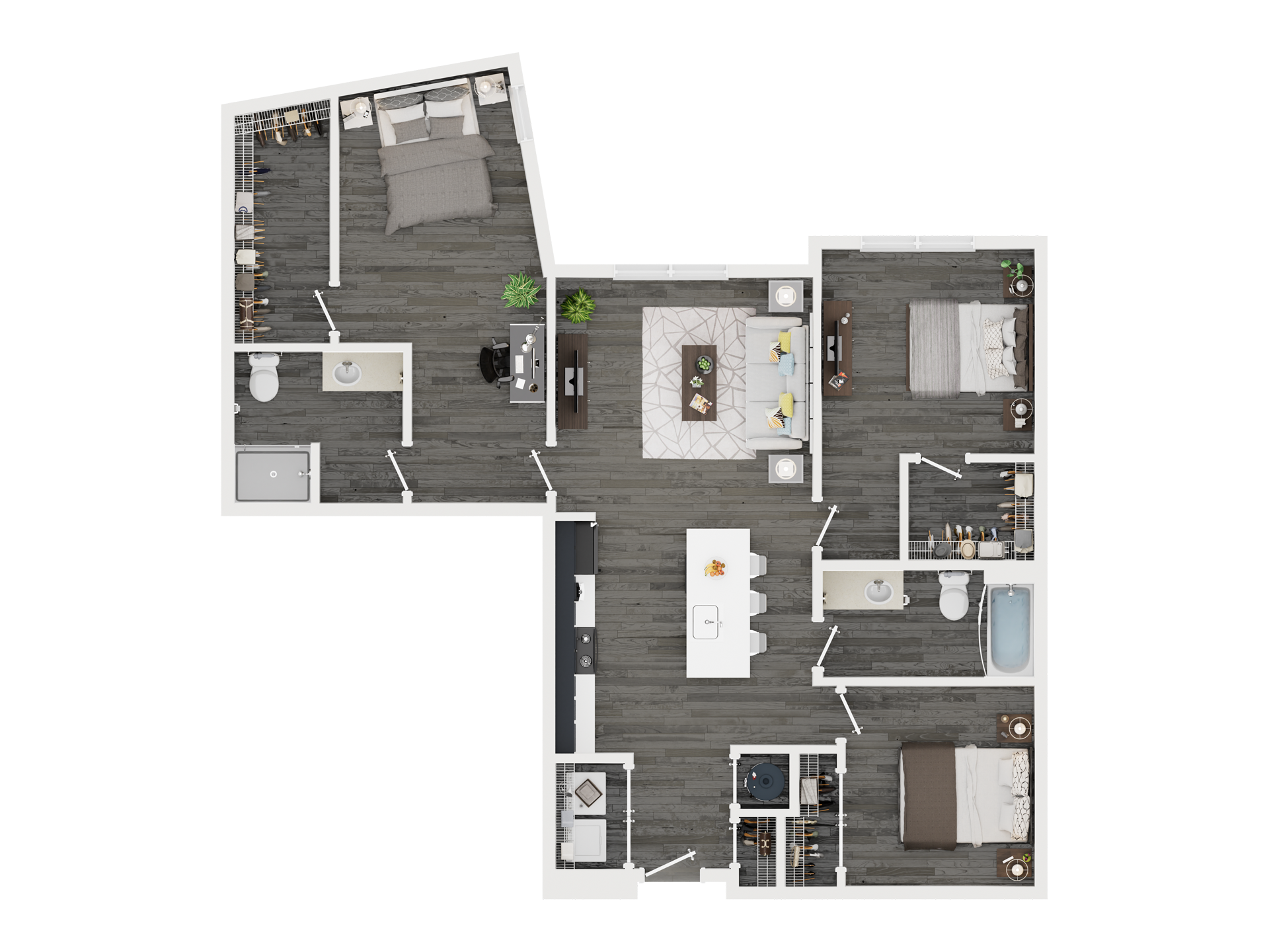 Explore our spacious floor plans at The Alan. With a variety of options, including one, two, and three-bedrooms, we're sure to have the perfect fit for you.